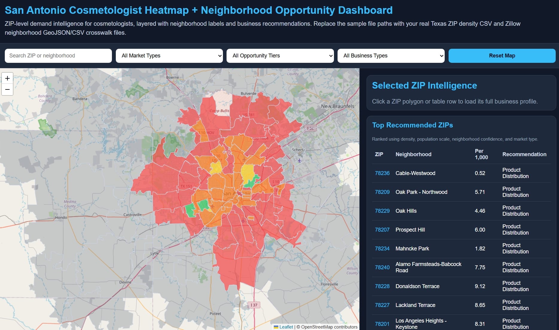 In places like Prospect Hill (78207), long known for its cultural identity and dense residential base, the data hints at a different kind of density: one of untapped economic potential.